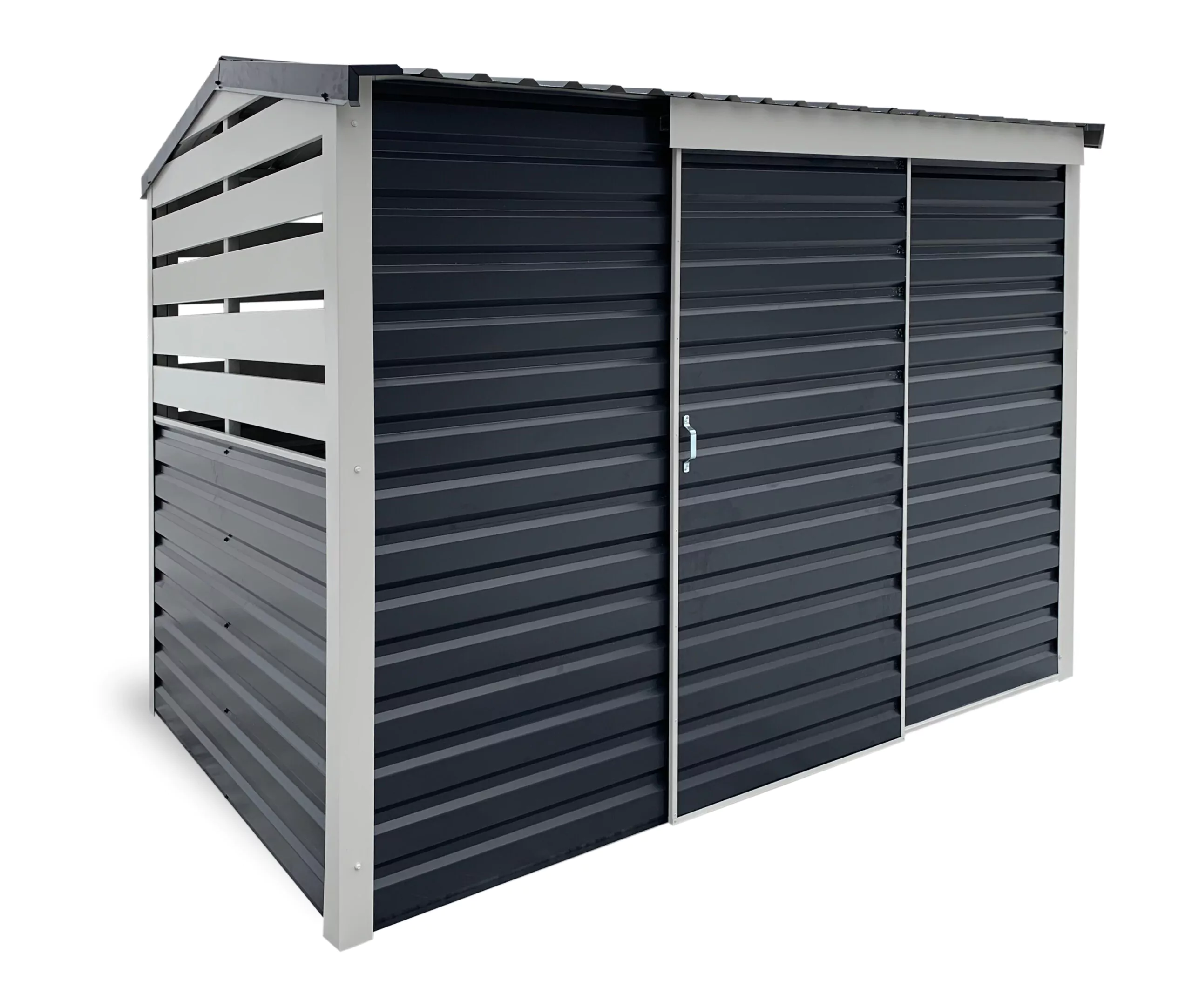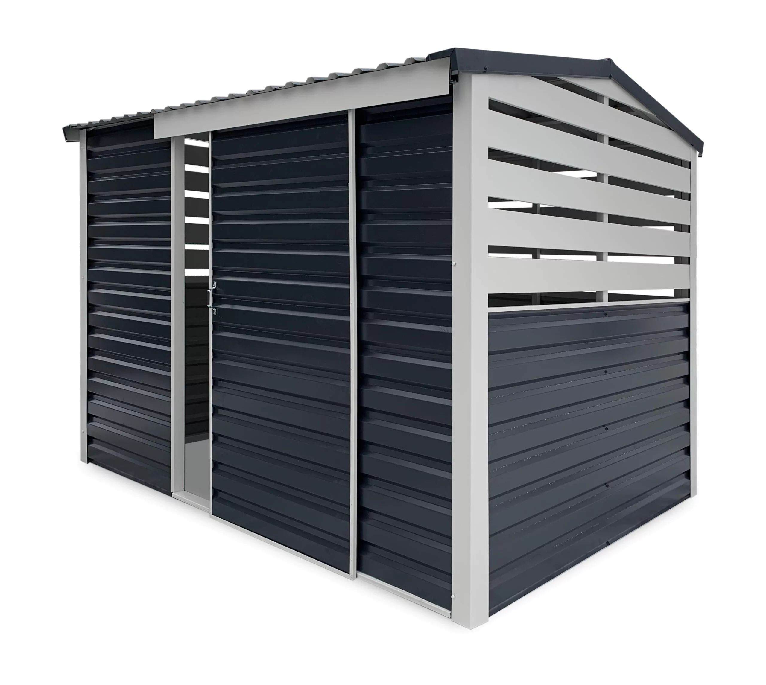 Tukeva metallinen, harjakattoinen pihavarasto työkalujen puutarhakalusteiden ja tarvikkeiden varastointiin. Teräsrakenne yhdessä sinkkipäällysteen ja pulveriviimeistelyn kanssa tekevät vajasta kestävän ja vahvan. Markki pihavarasto toimitetaan valmiiksi kasattuina moduuleina, jotka ovat helposti kasattavissa. Pinta-ala 6 m2, Varaston mitat 2m x 3m.