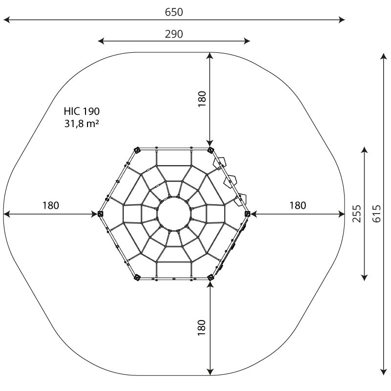 Moderni kiipeilykehä lapsen motorisen kehityksen tueksi. Tarkoitettu 3-14 -vuotiaille. Valmistettu kestävästä materiaalista. Tilantarve 6,6 x 6,15 m. Turva-alueen koko 32,1 m2, turva-alustana turvahiekka tai vastaava. Putoamiskorkeus 1,95 m. Suurin osa: paino 13,0 kg, pituus 2,65 m. Köysien väri valittavissa beige, punainen tai musta.